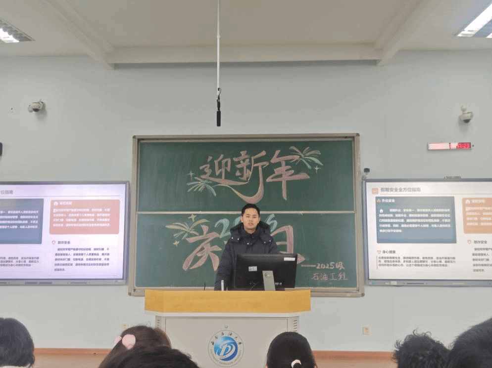 2025年12月31日上午11时,我院石油工程2025级1-2班、10-11班年级大会在思学楼C210顺利召开,此次会议重点部署辅导员工作交接、元旦及寒假安全注意事项、期末备考动员等工作任务。学院党委副书记钱广、辅导员何敏、上官自然及唐雨涵出席会议,全体同学参会。