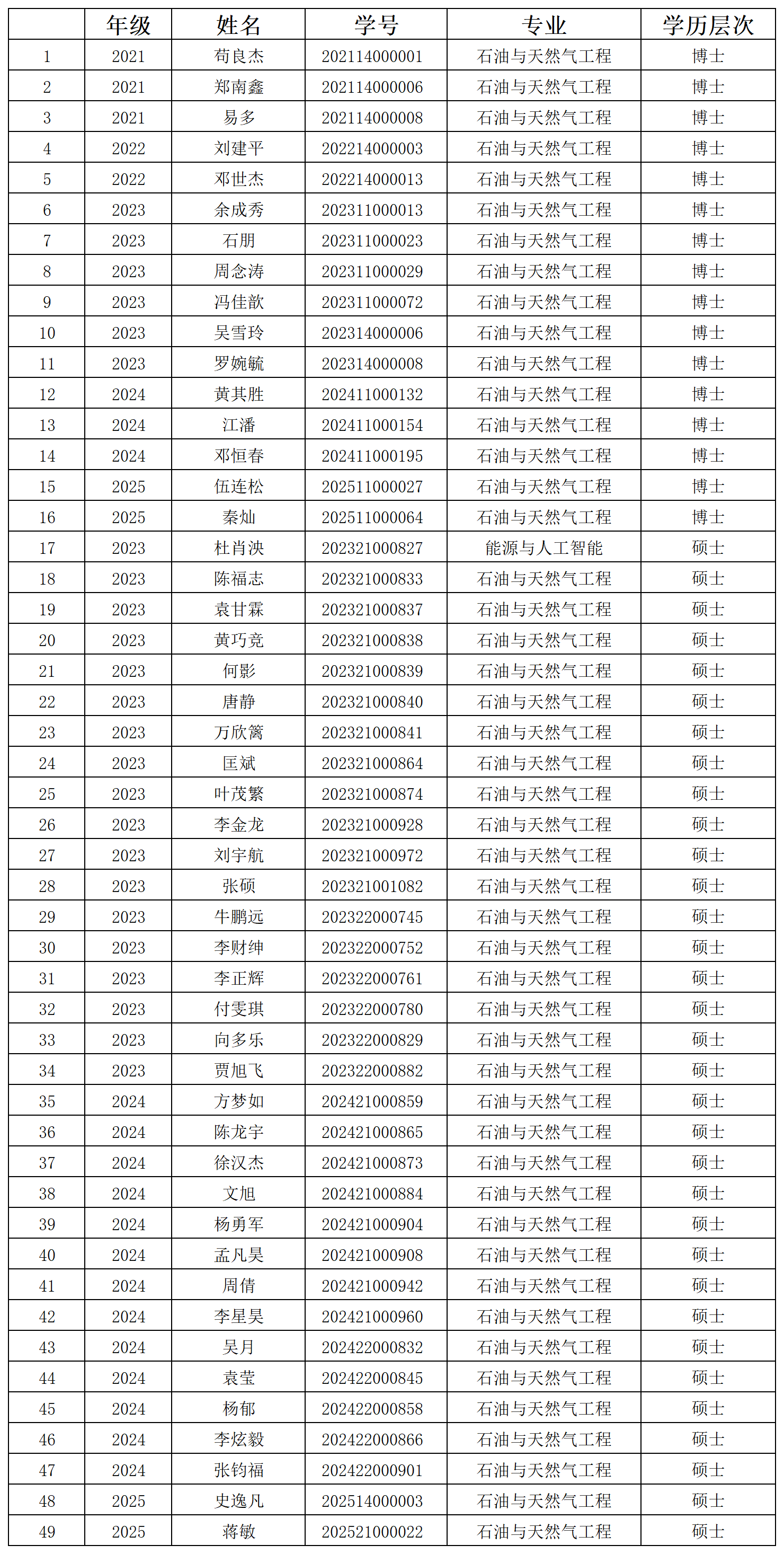 石油与天然气工程学院研究生国家奖学金拟推荐名单公示