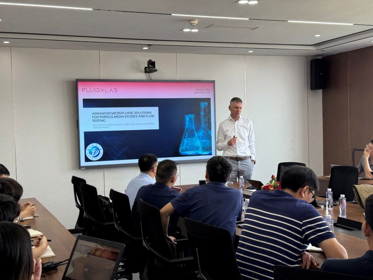 卢聪代表学院对Leonhard Ganzer教授一行的到访表示热烈欢迎,并介绍了学院的发展历程、学科建设、工程实践与标志性成果。他特别感谢克劳斯塔尔工业大学在人才联合培养和科研国际合作方面长期以来的支持。储层增产改造创新团队党支部书记刘彧轩介绍了团队的发展现状和研究方向,并提出微流控技术在储层增产改造中的应用需求与研究展望。