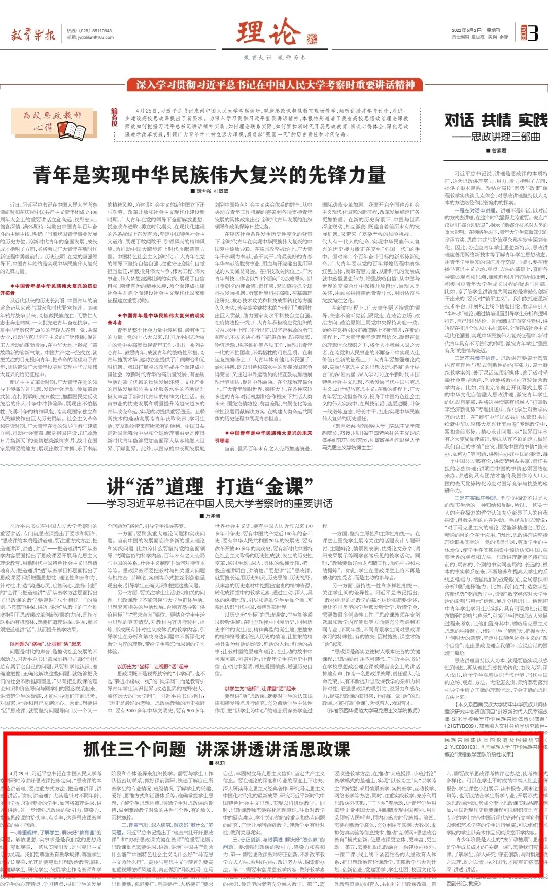 学院党委副书记林莉教授题为《抓住三个问题 讲深讲透讲活思政课》的文章在《教育导报》2022年第52期(总共3700期)导报理论版刊登。