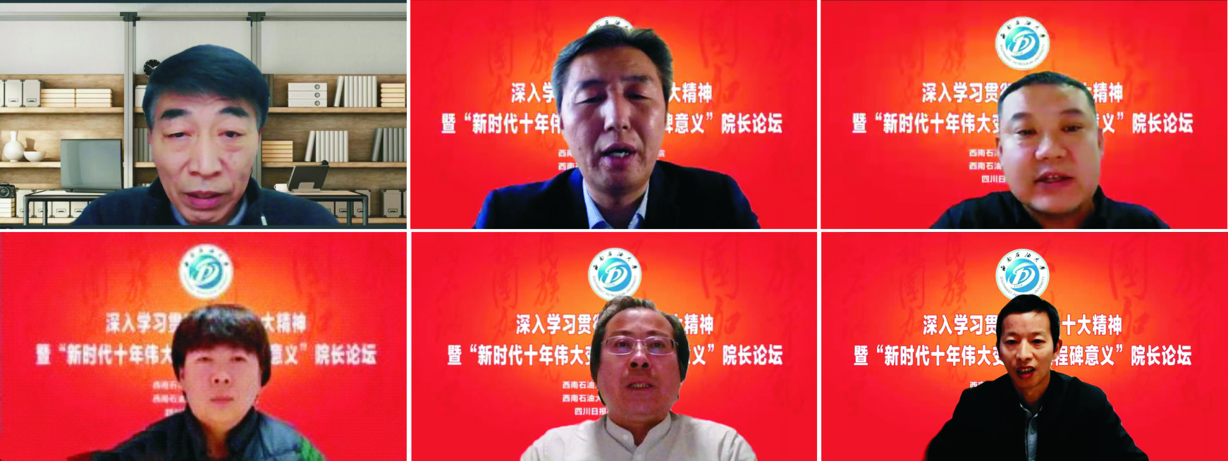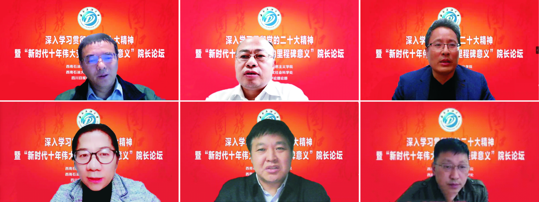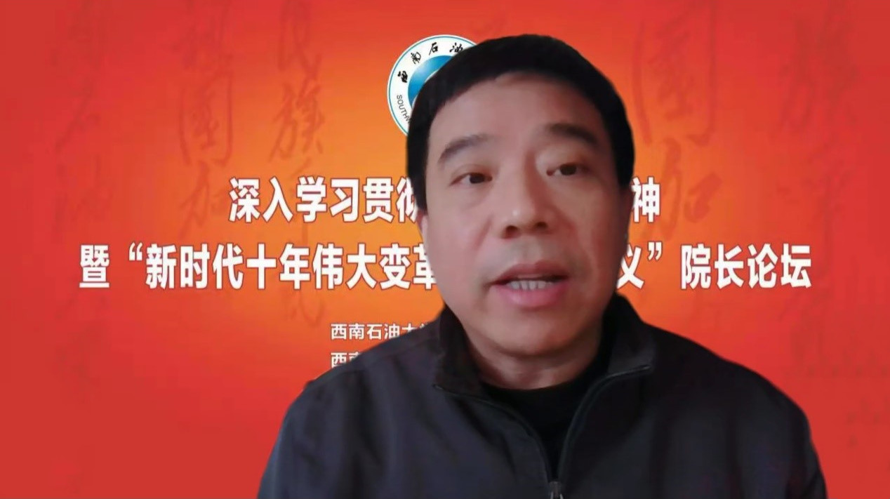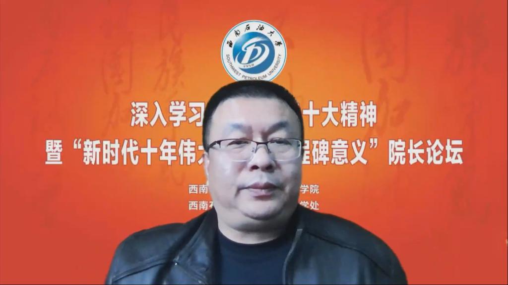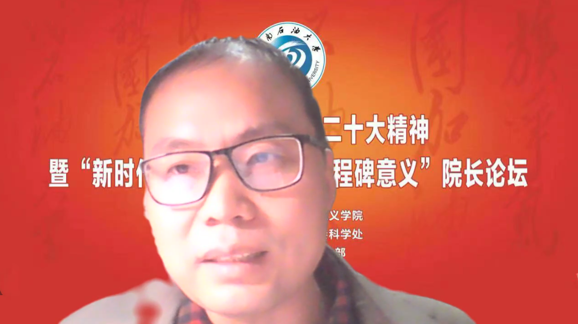 11月27日,我院、学校人文社会科学处、四川日报社评论理论部联合举办“深入学习贯彻党的二十大精神暨新时代十年伟大变革的里程碑意义”院长论坛,来自全国的12位马克思主义学院院长做了专题研讨。四川省教育厅宣传思想与统一战线工作处一级调研员曹善忠、学校党委书记陈永灿出席研讨会并致辞。会议开幕式由西南石油大学党委常委、副校长郭建春主持。