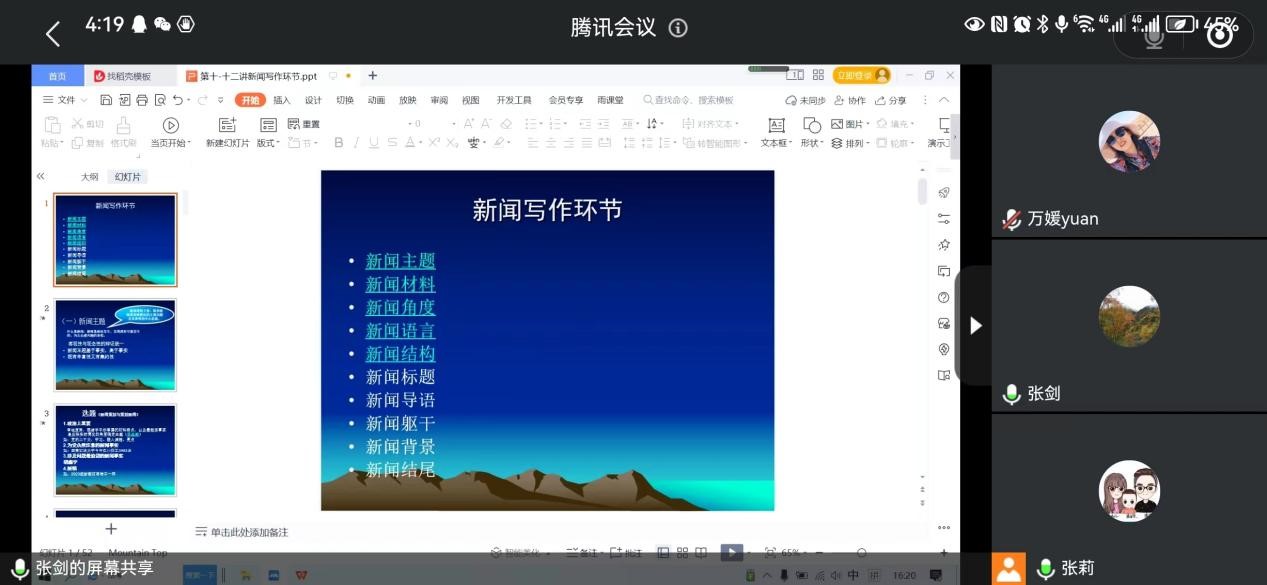 张剑讲述了新闻稿写作的重要性,强调了教研室宣传员的职能,并从新闻主题、新闻材料、新闻角度、新闻语言、新闻结构五大方面对教研室宣传员进行了写作培训。张剑强调新闻培训是一个长期过程,希望各教研室宣传员在培训和写作中不断加强学习。