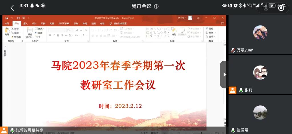 2月12日下午,学院在线上召开教研室工作会议,总体部署2023年春季学期教研室工作。学院党委书记、院长崔发展,院长助理张剑和张莉老师、各教研室主任及各教研室宣传员参加了此次会议。