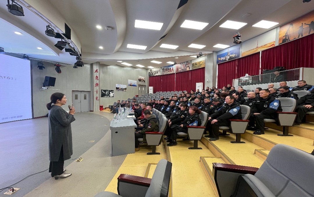 林莉教授从语言表达、沟通技巧、仪容仪表、投诉处理、危机应对、服务要点等六个方面入手,就安保人员相关的服务礼仪知识进行了详细的讲解与分享,并通过现场情景模拟演示,将抽象的礼仪知识与互动体验相结合,切实增强了培训实效。