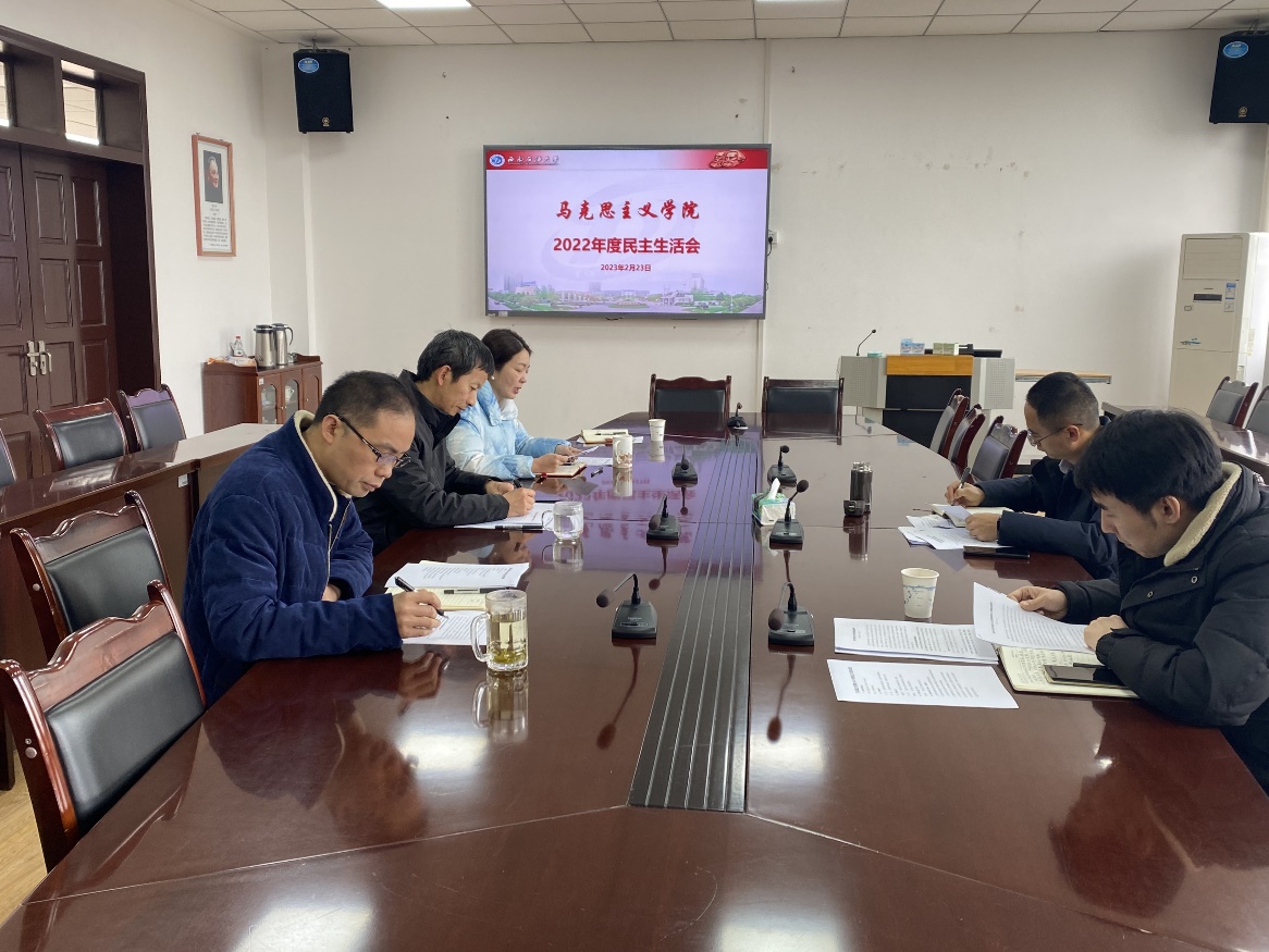 根据学校党委《关于开好2022年度处级党员领导干部民主生活会的通知》,马克思主义学院于2月23日下午开展了学院处级领导干部民主生活会,校第三督导组副组长张浩、成员冷帅到会督导,学院全体班子成员、学院组织干事参加。
