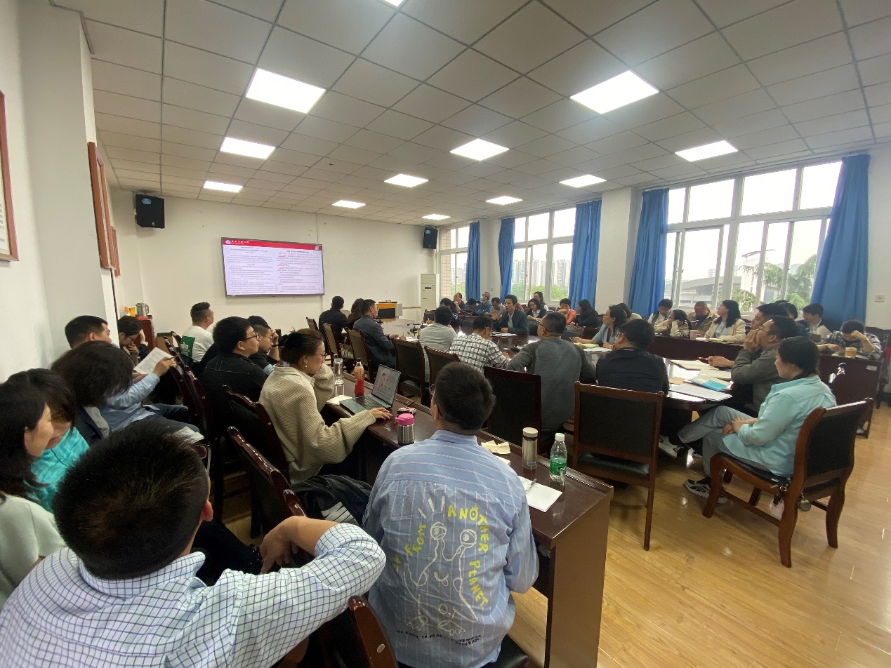 其次,院长助理张剑从国家社科申报及奖励制度、科研基地建设、德育文库建设等方面重点强调了学院科技创新能力和基础研究能力的培养与发展。他指出,一是各教研室要深度挖掘申报潜力,整合优势资源,积极申报国家基金项目,学院将进一步完善奖励制度,制定科研成果分级分类办法;二是全院教职工要积极参与学院的省级研究基地建设工作,凝聚发展合力,奋力推进学院高质量发展。此外,还对研究生招生、毕业论文审查和优秀硕士论文评选等工作作了详细说明。