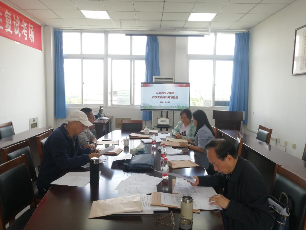 为深入推进学院本科教育教学审核评估迎评促建工作,加强学院教学工作内涵建设,学院于4月27日下午在思学楼D504组织开展教学文档专项检查工作,院长助理张莉和教学督导专家参加本次专项检查。