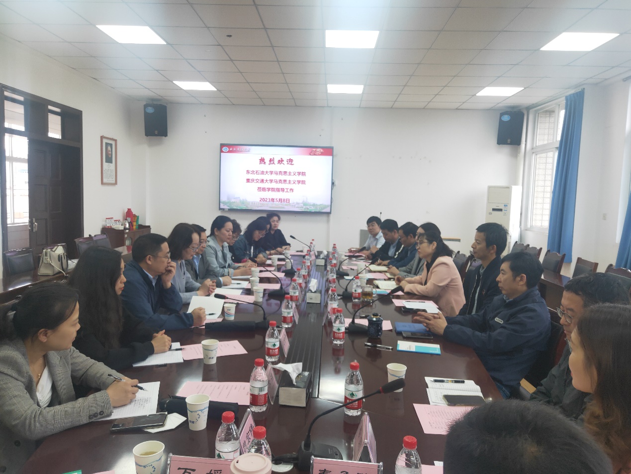 东北石油大学马克思主义学院副院长徐晓宇、赵金子,重庆交通大学马克思主义学院副院长苏洁、副书记黄亚凝,我院院长助理、科级干部、教研室主任代表及部分教师代表参加座谈会。