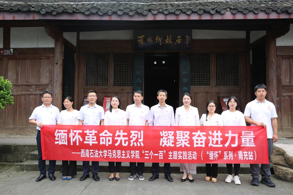 “缅怀革命先烈,凝聚奋进力量”南充站,是马克思主义学院“三个一百”主题实践活动中“缅怀”系列的其中一站。“三个一百”是马克思主义学院着力打造的思政课社会实践品牌活动,活动以“追寻”领袖足迹(“追寻”系列)、“缅怀”川籍革命家(“缅怀”系列)、“传承”石油精神(“传承”系列)为主要内容,旨在通过一系列实地走访和实践调研,引导青年感受新时代祖国翻天覆地的新变化,推进习近平新时代中国特色社会主义思想入脑入心入行。
