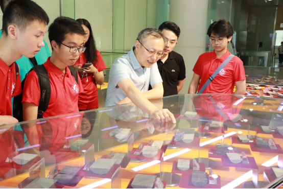 郭平教授在研究院给实践队学生讲解岩芯用途(供图:张淞泊)