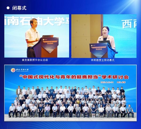崔发展在总结时指出,本次会议主题聚焦,紧紧围绕着中国现代化和青年的挺膺担当来切入。会议观点鲜明,理论性强,提出了很多真知灼见。会议风采多样,各具特色,启迪了我们的思维,让我们切实享受到一场理论盛宴。欢迎各位专家和来宾到成都的街头走一走,感受中国式现代化的万千气象,也希望各位专家和来宾继续关心支持西南石油大学马克思主义学院的建设和发展。