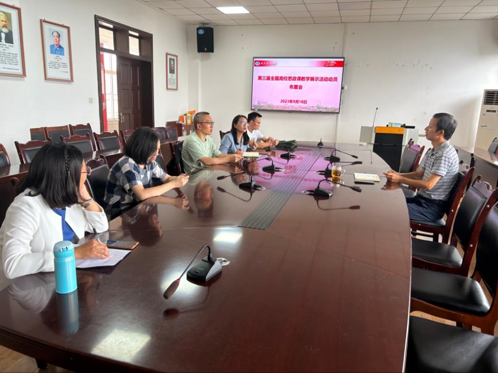 9月18日下午,学院在思学楼D507会议室召开第三届全国高校思政课教学展示活动动员部署会。会议由学院党委书记、院长崔发展主持,院长助理和相关教师参加。