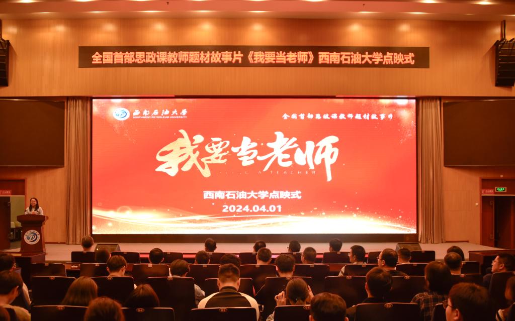 4月1日晚,全国首部思政课教师题材故事片《我要当老师》西南石油大学点映式在图书馆报告厅举行。学校党委书记张烈辉,党委副书记、纪委书记张明,党委常委、副校长祝效华、周莹,党委常委、组织部部长易联树和500余名师生代表在观影中同上了一堂“大思政课”。