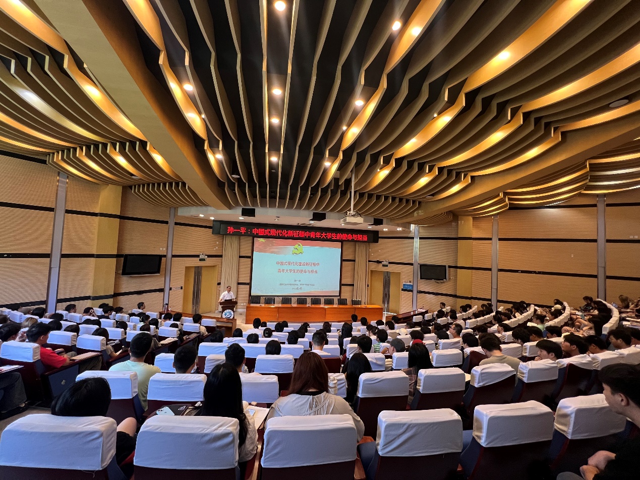 孙一平老师结合自己的学生时代,讲述了大学期间的学习方式、生活方式,以“小故事、小事件、小问题”引入中国式现代化的主题,让同学们更加易于理解中国式现代化的实质与内涵。作为青年大学生,我们要坚定远大理想、润养家国情怀、滋养敢闯锐气、涵养实干作风,在中国式现代化建设中挺膺担当。