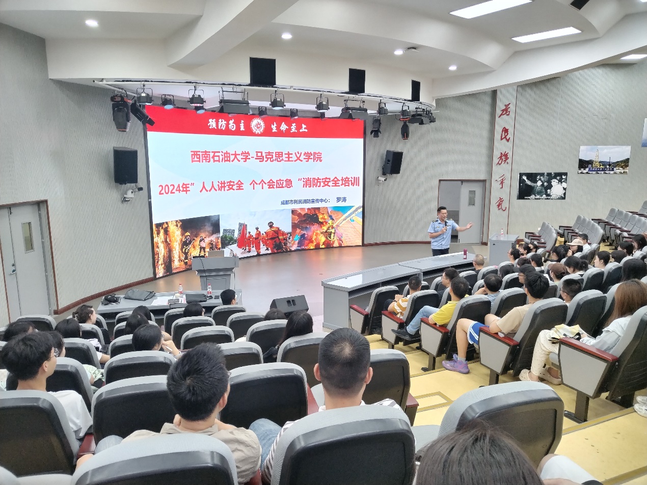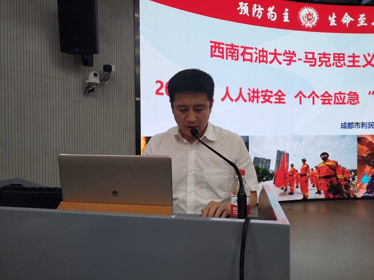 马克思主义学院为进一步落实学校安全教育工作精神,增强师生的消防安全意识。5月30日下午,学院邀请成都市利民消防宣传中心罗涛教官,在思学楼C110为学院师生开展了以“办公用电安全、应急逃生技能学习”为主题的消防安全知识专题培训。培训由学院党委书记孙德刚主持。