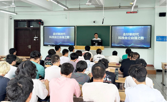 6月21日上午,学校党委常委、副校长祝效华围绕“走好新时代 科技自立自强之路”这一专题,在思学楼 A213为机电院2023级机械工程专业学生,讲授了《形势与政策》课。