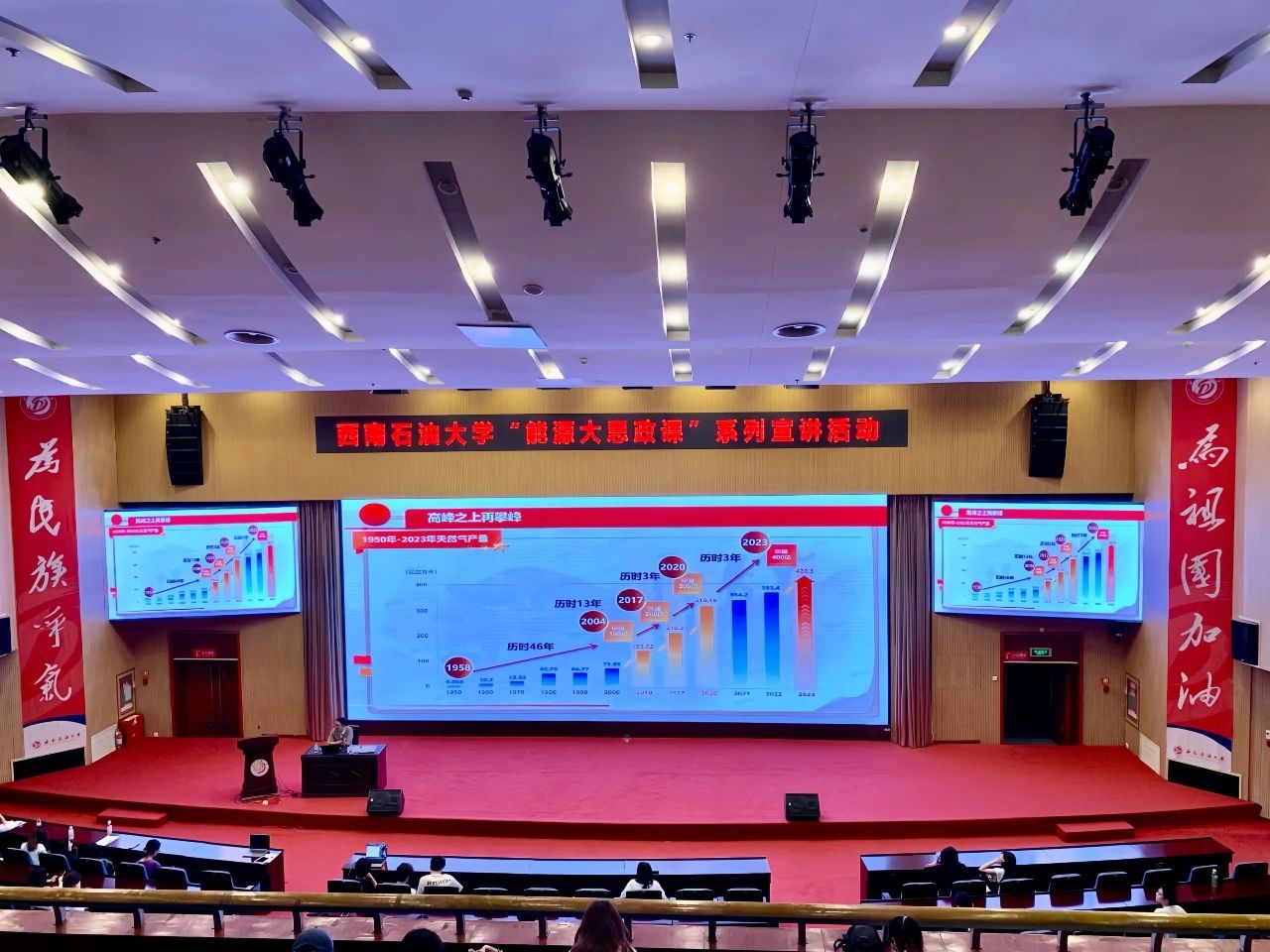 6月25日下午,西南石油大学图书馆报告厅内座无虚席、气氛热烈。为深化校企合作、丰富思政教育内涵,中国石油西南油气田公司党委宣传部副部长熊珍应邀参加西南石油大学“能源大思政课”系列宣讲活动,为全校师生作了题为“传承弘扬石油精神,点亮青春油气梦想”的宣讲报告。报告会由马克思主义学院副院长张莉主持,全校各学院师生代表参加。