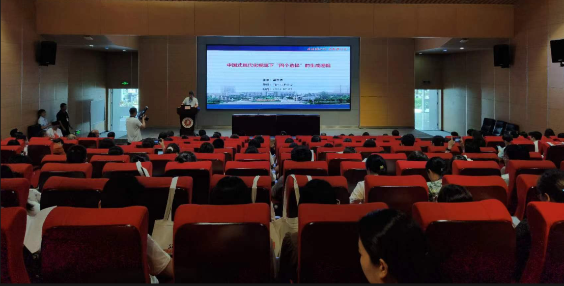 我院崔发展、黄小彤、陈倩晗、何松蔚等几位老师参加了此次年会。我院院长崔发展教授以“中国式现代化视域下‘四个选择’的生成逻辑”为题,发表了主旨报告。评议人指出报告立足于中国式现代化,创新性地解剖了四个选择的历史生成过程,为学界同人理解“四个选择”这一纲要课的基本脉络提供了新的理论维度。