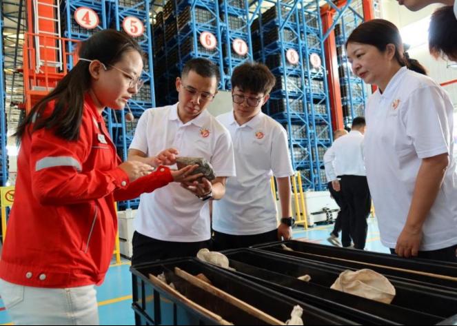 (图九:参观岩心库)