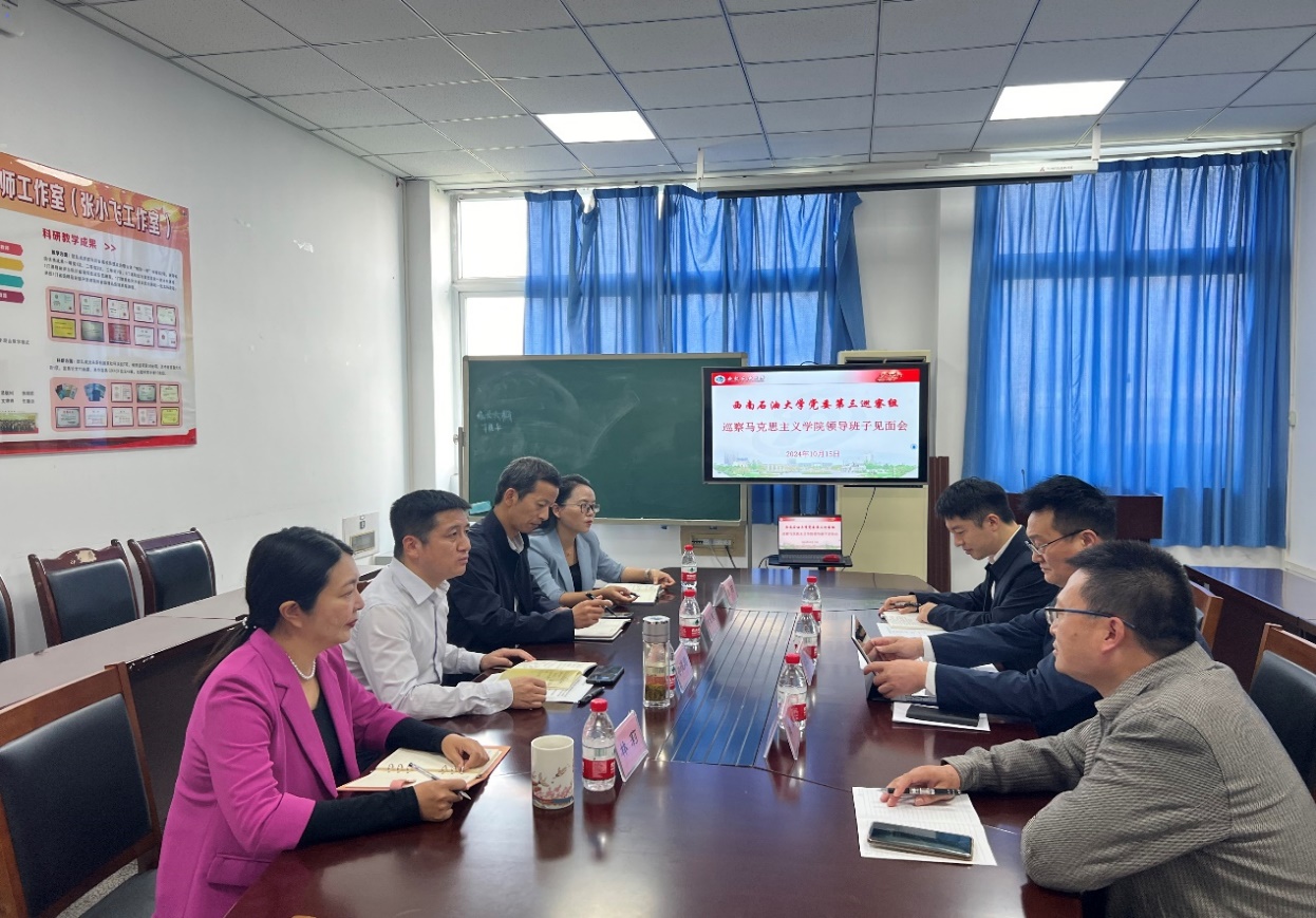 10月15日下午,根据学校党委的统一部署,学校党委第三巡察组在思学楼D504与马克思主义学院班子见面沟通。此次会议是巡察工作动员会前的重要环节,旨在确保双方充分理解巡察任务,明确工作要求,为后续的巡察工作奠定坚实基础。此次见面会参会人员包括巡察组组长、副组长,巡察办有关负责同志,以及学院班子成员。会议由巡察组组长李忠伟主持。
