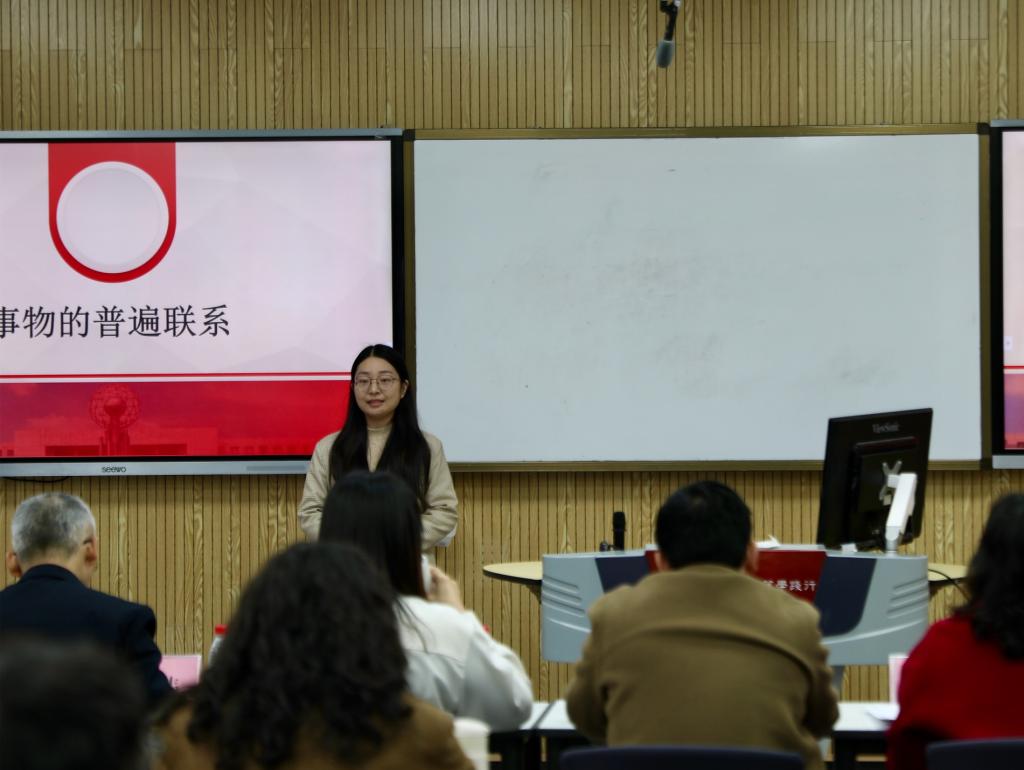 会议期间组织了教学竞赛,来自全省50余所高校的优秀教师,围绕马克思主义基本原理进行分组教学展示,他们理论联系实际,将教材体系转化为教学体系,在教课过程中激情澎湃,带来一场场选题广泛又颇具特色的高校思政课。我院教师陈庆玲选择“事物的普遍联系”知识点参加了此次教学展示并接受专家点评。