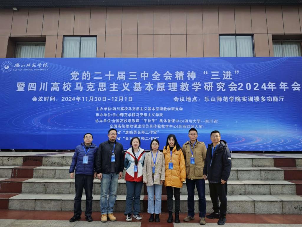 11月30日,由四川高校马克思主义基本原理教学研究会主办,乐山师范学院马克思主义学院承办的党的二十届三中全会精神“三进”暨四川高校马克思主义基本原理教学研究会2024年年会在乐山师范学院顺利举行。教育部马克思主义基本原理分教学指导委员会委员、四川高校马克思主义基本原理教学研究会会长、西南财经大学马克思主义学院院长唐晓勇,四川省教育厅宣传思想与统战工作处处长李大鹏,乐山师范学院党委书记、校长刘进,党委常委、党委宣传部统战部部长杨锐以及全省近40所马院领导、50余所高校的老师与学生代表出席本次会议。我院教师任重远、杨伊、何舒骏、李建楠、卢思熙、陈庆玲、陈朝月受邀参加此次会议。