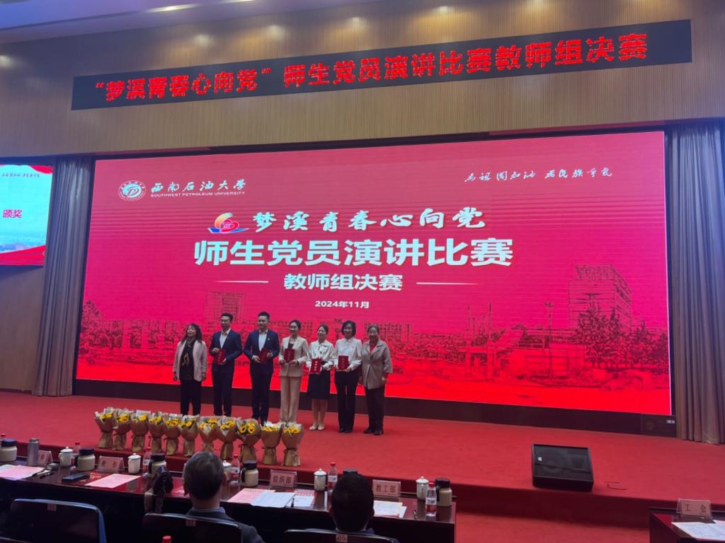 学院教师万媛(右三)在 “梦溪青春心向党”党员演讲比赛中获得一等奖