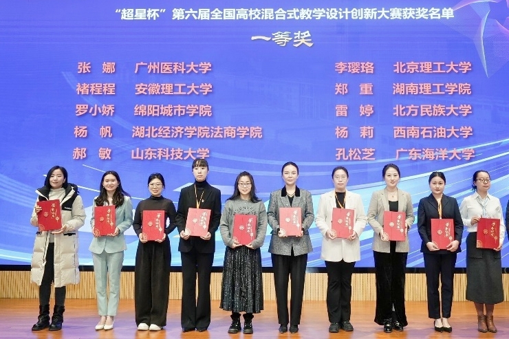 据悉,全国高校混合式教学设计创新大赛创办于2019年,是促进高校深化教育教学改革,体现高校教师展示一流课程建设成果以及混合式教学创新实践的重要赛道。本届大赛自6月启动,历时7个月,经过校内初赛、全国复赛、全国决赛三个阶段的激烈角逐,全国各地411所高校的教师报名参加本届大赛,372所高校的999门课程进入复赛。最终66所高校的80门课程入围全国现场决赛。经过专家复赛网络评审和决赛现场评审,大赛共产生特等奖12项、一等奖60项、二等奖154项、三等奖204项以及优胜奖403项。