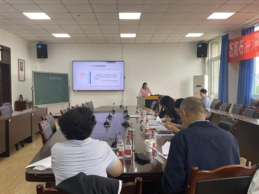 4月22日上午,马克思主义学院在思学楼D507开展了“2023年入职教师培养期届满考核试讲活动”,本次活动由学院副院长张莉主持,邀请了教师教学发展中心教师教学发展办公室周秋旭主任,学院督导专家杨慧教授、胡国松教授、杨清元教授进行现场指导。