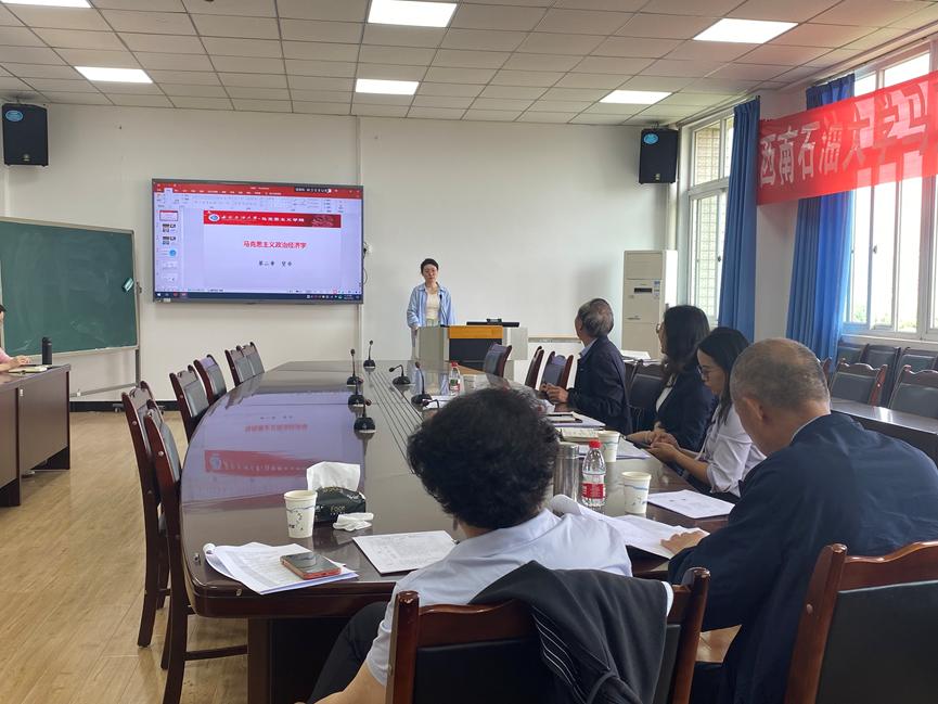 会上,章静、李晋阳两位老师依次对《中国近现代史纲要》《马克思主义政治经济学》两门课程逐一进行了20分钟的教学展示。