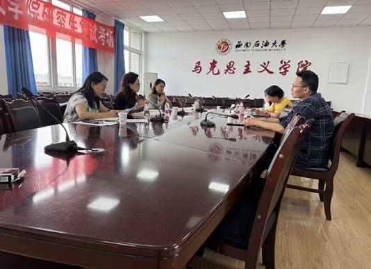 磨课现场,邵琪、任重远、卢婷婷三位老师依次围绕“江山就是人民,人民就是江山”,“坚持人民至上”,“全面落实以人民为中心的发展思想”三个节段的教学设计思路和案例导入进行说课。与会专家从授课逻辑、理论维度、案例选取、价值意义等层面对对三位老师的说课进行点评。专家建议根据学校行业特色充分挖掘石油精神,整合校内外资源,依托油田井架、博物馆、纪念馆等场所实施沉浸式教学,打造具有西南石大特色的行走的思政课。