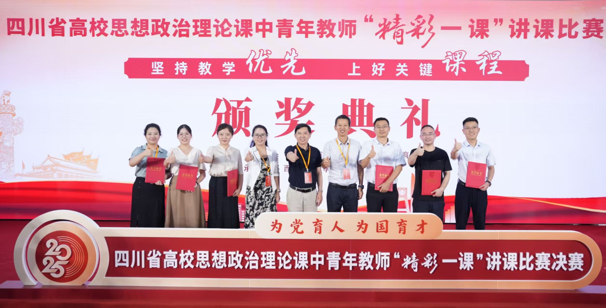 7月21日,2025年四川省高校思想政治理论课中青年教师“精彩一课”讲课比赛决赛在西华师范大学举行。我院文婷婷、刘海军、卢思熙、万媛、张邯、秦承明六位教师经过省级复赛遴选顺利晋级决赛,荣获本次比赛特等奖1项、一等奖3项、二等奖2项。