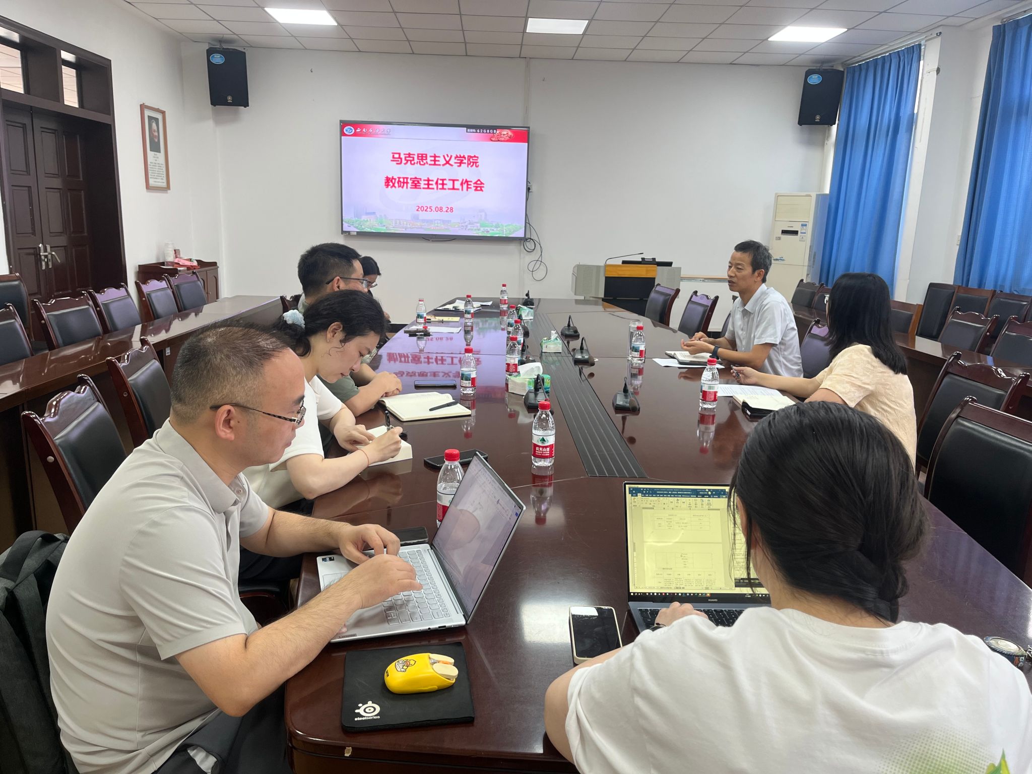 为确保新学期教学工作的顺利开展,学院各部门提前返校,协同配合,精心部署新学期教学工作安排,周密制定《马克思主义学院2025年秋季学期开学教学准备及检查工作实施方案》,8月28日召开教研室主任工作会议,8月31日召开新学期开学巡课工作会,对新学期教师教学提出明确要求,强调教学规范,确保教学质量。