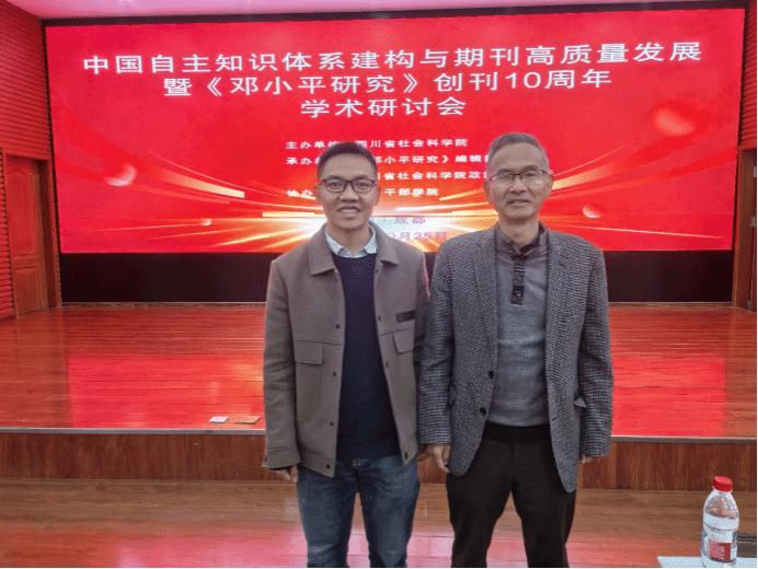 为深入贯彻落实习近平总书记“要办好一流学术期刊和各类学术平台,加强国内国际学术交流”,“加快构建中国哲学社会科学自主知识体系”的重要指示,全面探讨学术期刊高质量发展路径,《邓小平研究》创刊10周年暨中国自主知识体系建构与学术期刊高质量发展研讨会于2025年10月25日在四川成都隆重召开。本次会议由四川省社会科学院主办,中央党史和文献研究院、中国社会科学院、清华大学等单位的专家学者,以及《改革》《学习与探索》《贵州社会科学》等期刊的代表共百余人参加会议。我院教师李学林、李卓受邀参加本次会议。