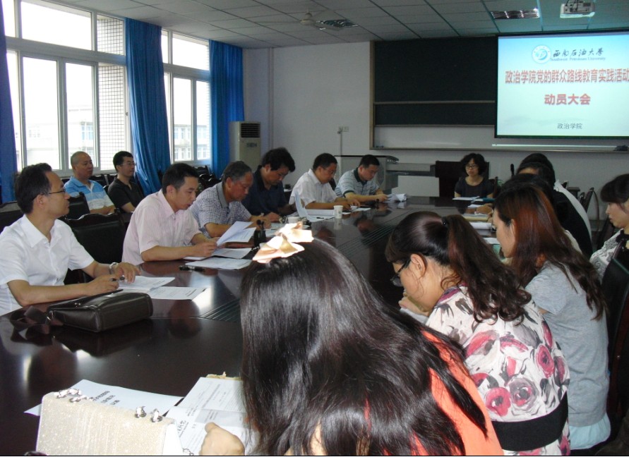 7月11日上午,政治学院深入开展党的群众路线教育实践活动动员大会在博学楼A508隆重召开,政治学院党政领导、各支部书记、教研室主任、院教学办公室主任、工会主席,以及党员教师代表、群众教师代表30余人参加会议,政治学院院长张小飞主持会议,学校党的群众路线教育实践活动督导组第三小组督导员杨华斌、王守伟出席并讲话。