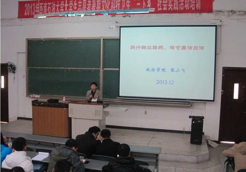 12月5日下午4:30,政治学院院长张小飞教授在明辨楼C205为石油工程学院全体学生干部作题为“践行群众路线,恪守廉洁自律”的讲座。
