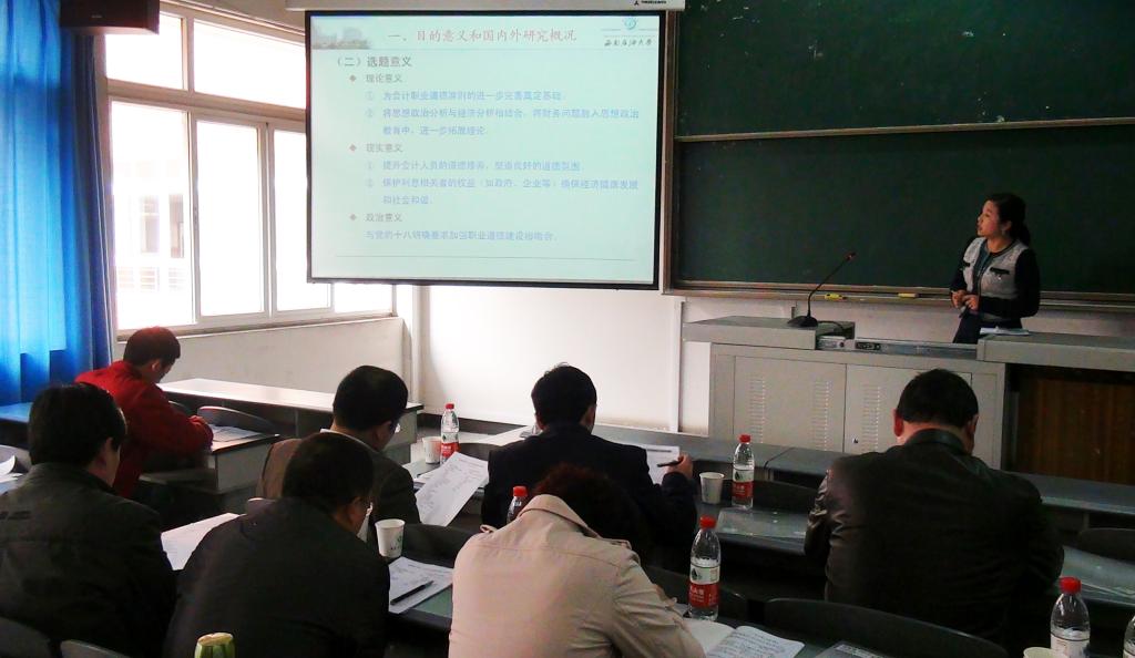 在答辩现场,同学们按顺序依次上台,主要以PPT汇报的形式,对自己的论文进行论述,重点阐述所选题目的理论实践意义、研究目的和研究方法、研究现状、创新点及论文主体框架,并说明了进度安排、预期成果。参加开题报告会的各位导师认真听取答辩汇报,根据同学们的介绍和开题报告材料进行了逐一审核,指出了论文写作的不足之处,如论文选题范围、内容阐述层次性及文献综述引用的规范性等,并针对以上不足,提出了建设性参考意见,为毕业生下一步的论文撰写打下了良好的基础。同学们虚心接受意见和建议,纷纷表示此次答辩使他们对自己毕业论文写作中所存在的问题有了更清晰的认识,将努力完成毕业论文的撰写。