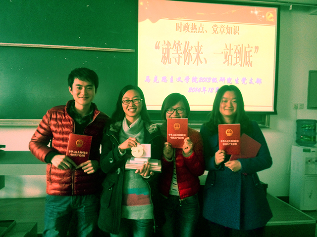 “就等你来,一站到底”。12月12日下午,马克思主义学院2013级研究生党支部在博学楼A508,开展了以时政热点、党章宪法为主要内容的知识竞赛活动,党支部全体成员及班级部分同学积极参与。本次活动由支部书记杨晓亮主持。