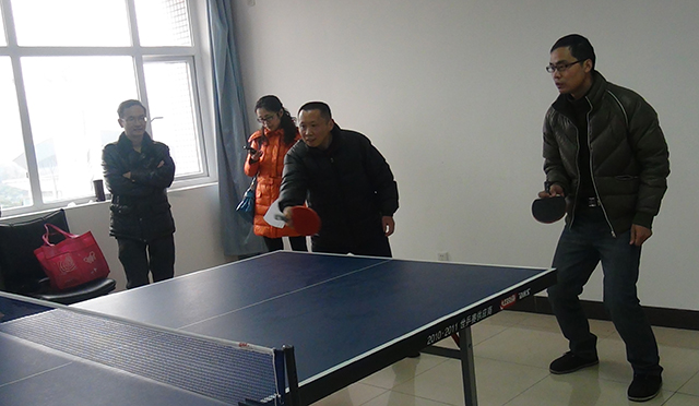 2014年12月25日下午,我院工会举行了教职工乒乓球对抗赛。思想道德修养与法律基础、中国近现代史纲要、文化素质三个教研室组成黄队,马克思主义原理、毛泽东思想和中国特色社会主义理论概论、形势与政策三个教研室组成红队,两队共进行了男子单打、女子单打、男子双打、女子双打、混合双打的比赛,最终黄队以3:2战胜了红队。在比赛中,教职工们积极参与,认真对待,打出一个又一个的好球,啦啦队更是摇旗呐喊、助威不停。比赛双方赛出了水平,赛出了风格。