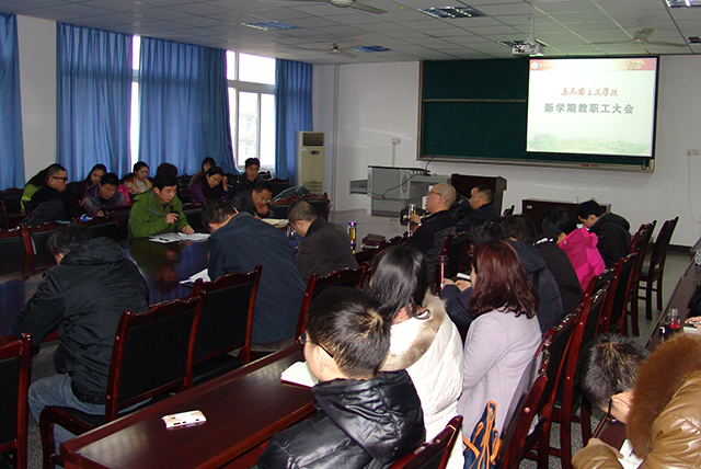 2月27日上午,学院在博学楼A508会议室召开教职工大会,安排部署新学期学院工作,学院领导班子及全体教师参加了会议,大会由帅建祥书记主持。