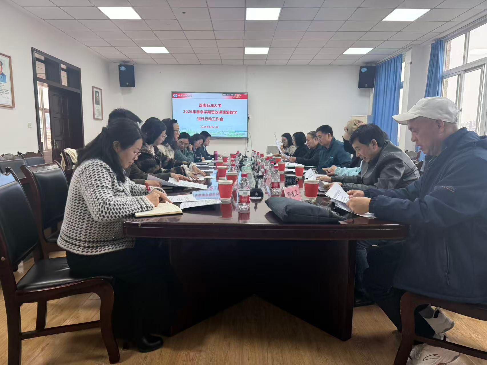 为深入贯彻落实四川省委教育工委关于高校思政课专家听课调研的工作要求,全面提升我校思政课教学质量,3月25日下午,西南石油大学2026年春季学期思政课课堂教学提升行动工作会在思学楼D507会议室召开。教学评估处副处长王艳,学院副院长张健丰,思政课教学督导组成员,校领导联络员等参加了此次会议。会议由马克思主义学院副院长张莉主持。