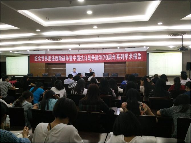 讲座中,陈教授首先提出从全球史视野下理解中国抗日战争,从当代国际格局透视中国抗战胜利,从当今大国关系回顾中国抗战胜利。其次,陈教授着重指出中国抗战胜利是世界反法西斯战争重要组成部分,具有全球性战略地位;作为世界第二经济体的中国无意挑战现存大国,目的在于维护二战成果,维护世界和平;举行抗战胜利纪念活动是教育青少年居安思危,铭记历史,奋发图强。