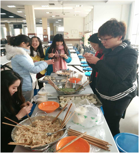 冬至,是我国的一个传统节日,俗称“冬节”,是二十四节气中最早制定出的节气,我国古代对冬至非常重视,被视为一个大节,曾有“冬至大如年”的说法。现在,每个地方也用当地的特色庆贺,北方地区有冬至宰羊,吃饺子、吃馄饨的习俗,南方地区有吃米团、汤圆等的习惯。为了传承中华传统习俗,丰富师生校园生活,12月23日上午,马克思主义学院2015级研究生在二餐厅一楼举办了庆元旦包水饺活动。研究生兼职辅导员胡仲成老师、学生兼职班主任朱培培参加了此次活动。