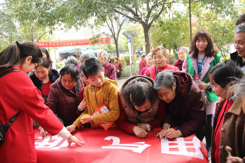 协会成员经过几周方案的策划、活动开展的选址、活动细节的讨论、宣传内容的选材,主持人的选定,宣传单页的修订,事无巨细,以便在当日能有精彩的表现。为当地群众宣传最为前沿的科普知识,为基地的影响力扩大更加深入人心。26日清晨,经过多日准备的他们在这一天更是显得非常紧张,前期的准备工作让他们更是谨慎地检查今日的活动每一条细节,生怕有任何一处疏漏,会让活动的开展黯然失色。在活动现场,主持人的精彩讲解赢得正兴社区居民认可,宣传人员更是凭借着自己的热情为科普活动的开展延伸了受众的范围。当地居民的积极回响、热情参与将科普活动的开展推向了一个又一个的高潮。在活动的最后,当地群众在横幅上签上了自己名字,为科普推广行动加油助力。