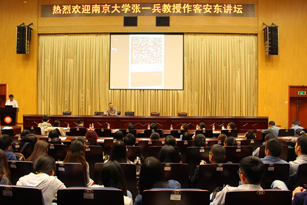 4月10日晚,安东讲坛第二十三讲“鲍德里亚:欢迎来到真实的荒漠——从电影《骇客帝国》谈起”在我校图书馆学术报告厅举行。我校诚邀国内著名哲学家、南京大学特聘教授、博士生导师张一兵为全校师生带来了一场思想盛宴。学工部部长蒲勇、副部长陈莉宏、马克思主义学院党总支帅建祥、院长张小飞、副院长崔发展出席报告会,马克思主义学院全体师生以及其他学院学生党员代表500余人聆听了报告。报告会由学工部部长蒲勇主持。