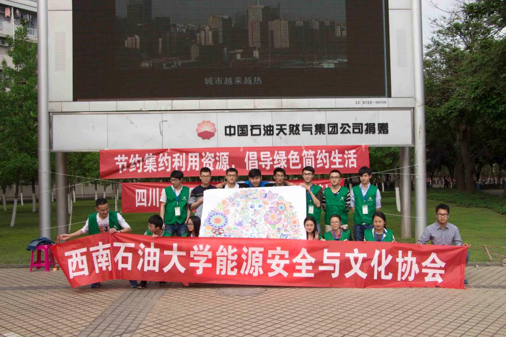 为迎接第47个世界地球日,倡导低碳生活,绿色出行。2016年4月24日下午3点到5点,四川省能源安全与文化社科普及基地联合能源安全与文化协会在西南石油大学博学楼广场开展一场以“节约集约利用资源、倡导绿色简约生活”为主题的校园行宣传活动。近20名宣传人员参与此次活动。