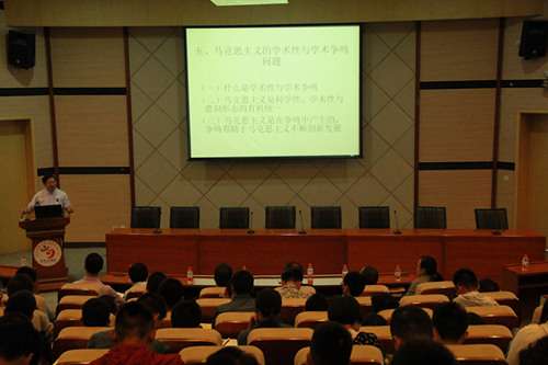 2016年9月23日,应学校科研处和马克思主义学院邀请,中国社科院博士生导师冯颜利教授来我校作了以《坚持和发展马克思主义要注意的十个问题》为主题的报告,本次报告会在思学楼A114会议室举行。学校副厅级调研员何沙教授,马克思主义学院院长张小飞、学工系统部分教师、马克思主义学院教师、马院全体研究生参加了本次报告会。报告会由学校副厅级调研员何沙教授主持。