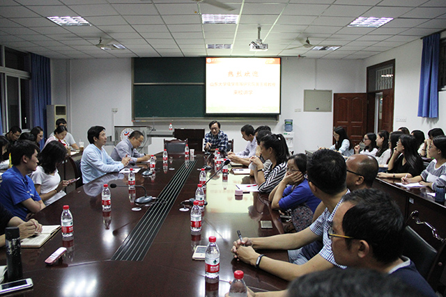 9月23日晚,应科研处和学院邀请,山东大学儒学高等研究院副院长、博士生导师黄玉顺教授做客我院道德讲堂和弘毅沙龙,在博学楼A508做了以《儒学和社会正义》为题的精彩学术报告。学院院长张小飞教授、党总支书记帅建祥、教师代表和全院研究生以及学校其他院系部分师生参加了报告会。报告会由学院副院长崔发展主持。