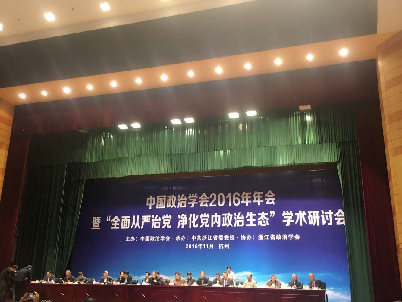11月5日,由中国政治学会主办、中共浙江省委党校承办、浙江省政治学会协办的中国政治学会2016年年会暨“全面从严治党 净化党内政治生态”学术研讨会在浙江省杭州市召开。来自浙江大学、中国社会科学院、四川大学、西南交通大学、中国人民解放军南京政治学院、西南石油大学、成都理工大学等单位的专家学者参加了本届年会。我校副厅级调研员何沙教授应邀出席会议,马克思主义学院张汇蓉、张译心同学参加会议。
