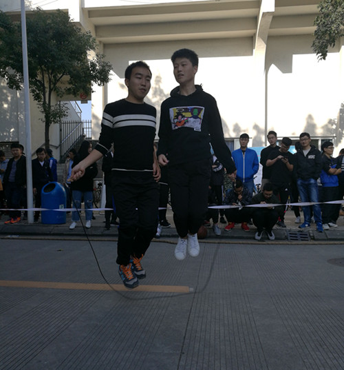 在跳绳比赛中,我院共有四名同学参与,他们精神饱满,勇于拼搏,身法灵活,动作娴熟,配合默契,彰显出青春的活力与朝气,赢得了现场观众的阵阵掌声。经过激烈角逐,最终获得男子小组第一的佳绩。